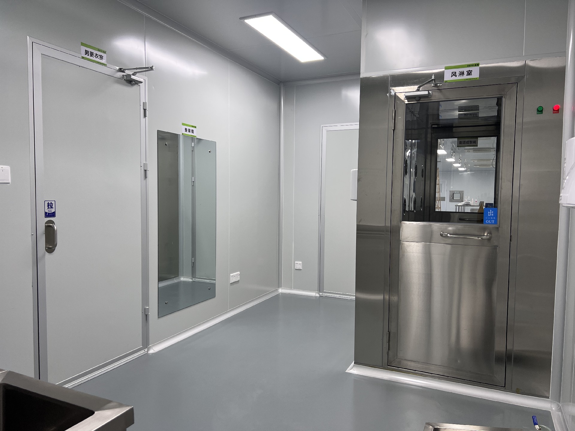 在空氣凈化系統方面,無塵車間的核心在于強大的空氣凈化能力,主要由初效過濾段、中效過濾段、高效過濾段(HEPA)、活性炭吸附段、紫外線殺菌燈、恒溫恒濕控制系統等組成。初效過濾段用于攔截空氣中較大顆粒的塵埃,中效過濾段進一步去除中等大小的顆粒物,高效過濾段能有效去除 0.3 微米以上的微粒,活性炭吸附段用于去除空氣中的有機物和異味,紫外線殺菌燈利用紫外線照射殺死空氣中的細菌和病毒,恒溫恒濕控制系統通常將溫度控制在 20 - 25°C,相對濕度控制在 45% - 65%。
